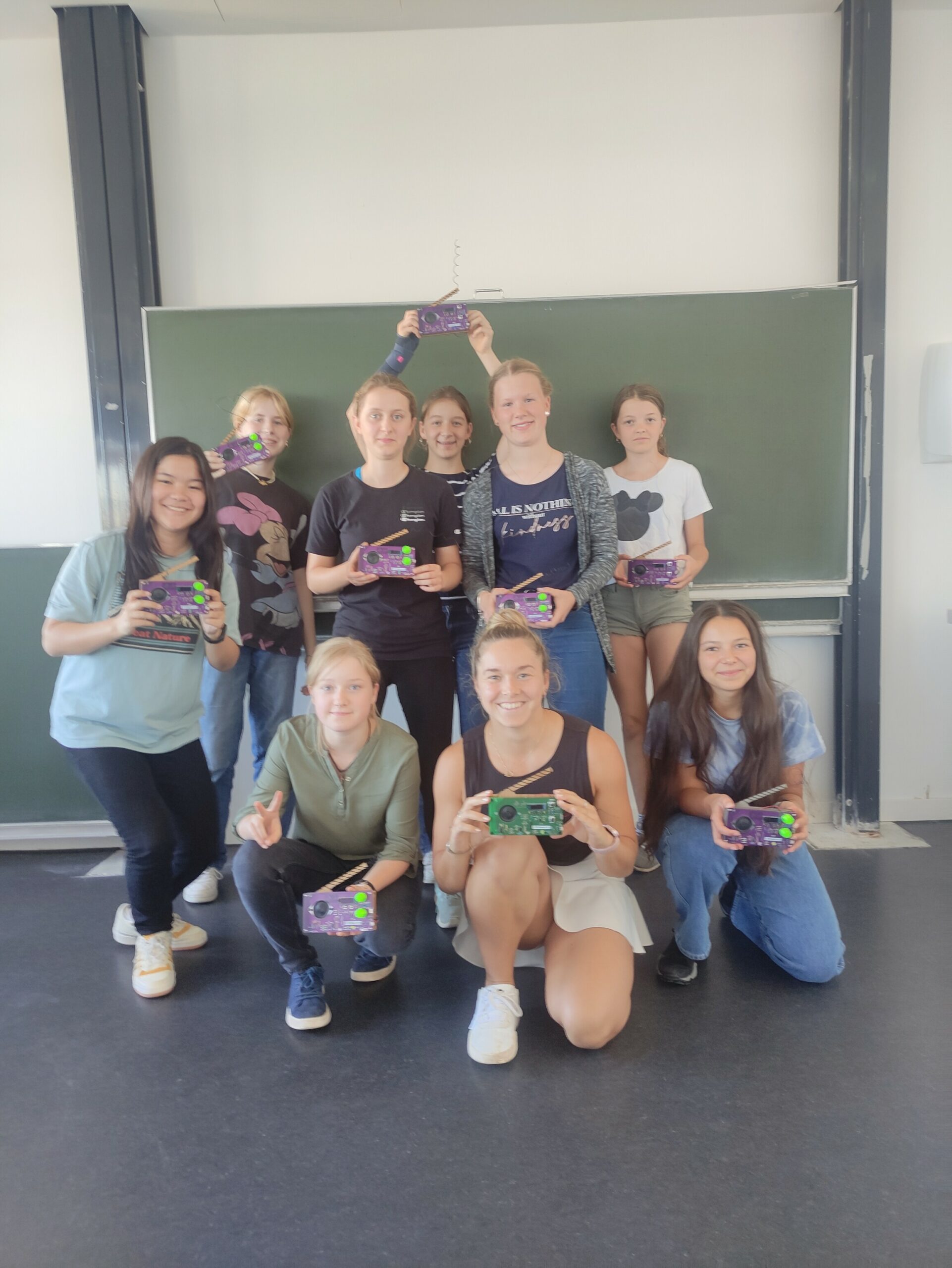 At the LTE the motto was „We are building a radio“ and so almost 30 girls were allowed to build a radio over 3 days with the help of the staff members Thomas Kurin and Jasmin Gabsteiger as well as the assistant scientist Katharina Fiedler. Resistors, capacitors and potentiometers were soldered, loudspeakers were mounted and much more, so that at the end of each experiment all girls were allowed to go home with their purple PCB radio. We are already looking forward to the next Girls and Technology internship.