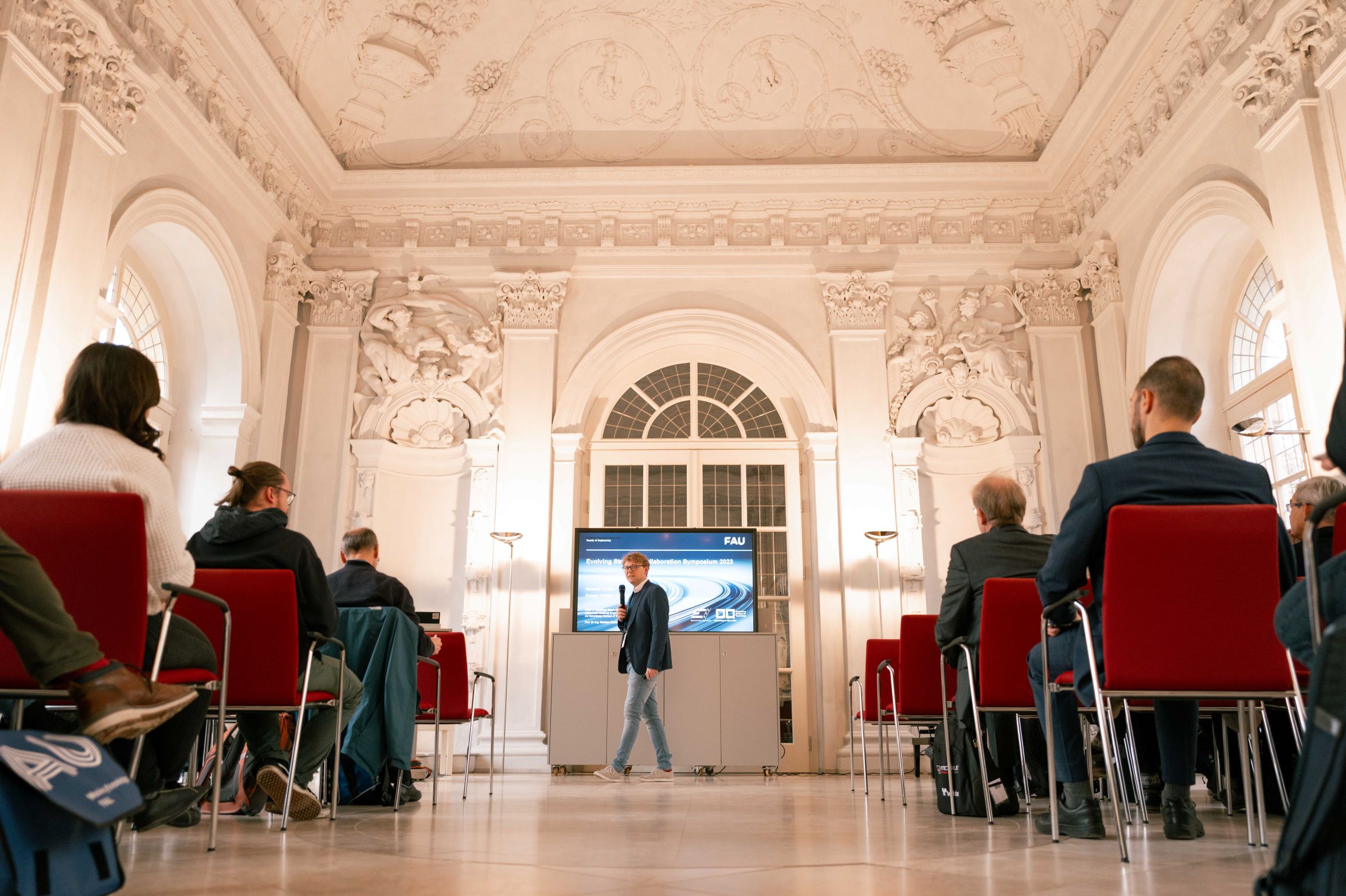 Das Symposium begann mit einer inspirierenden Eröffnungsrede von Lehrstuhlinhaber Prof. Dr. Norman Franchi. In seinem Vortrag skizzierte er die rasante Entwicklung des Lehrstuhls sowohl in den inhaltlichen Themen, als auch in den Zahlen der Mitarbeitenden. Die Zuhörer waren fasziniert von den Potenzialen, die sowohl in den Themen des Lehrstuhls als auch in den Mitarbeitenden stecken.